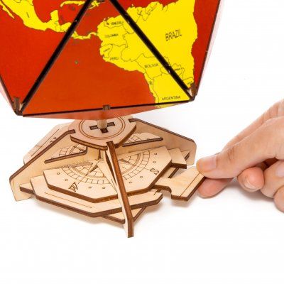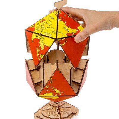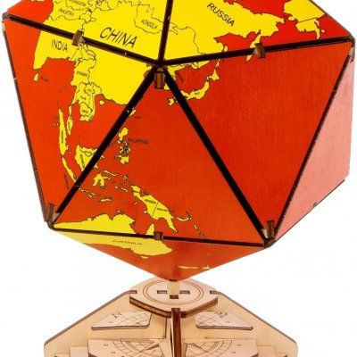 Глобус выполнен из дерева (березовой фанеры высшего сорта) и окрашен экологичными красками.