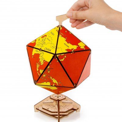 Глобус икосаэдрической формы с секретным отделением внутри шара и секретным механическим запирающим механизмом.