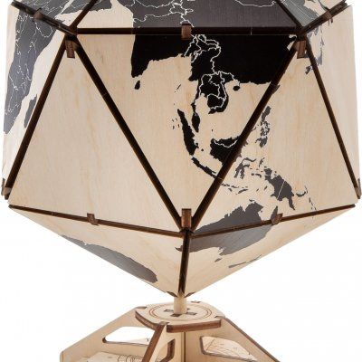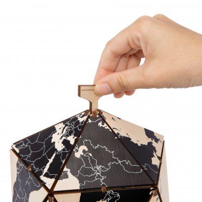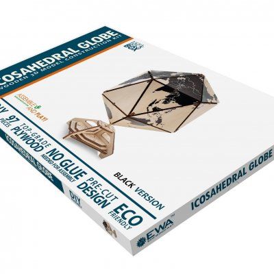 Конструктор деревянный 3D EWA Глобус Икосаэдр с секретом (шкатулка, сейф) черный