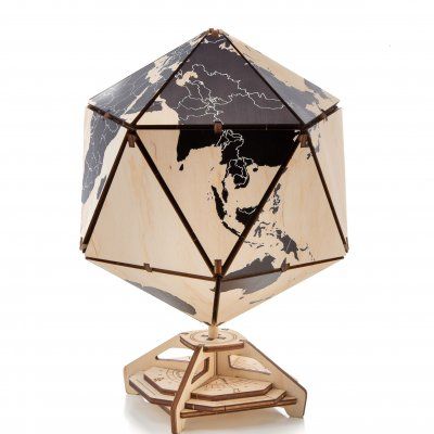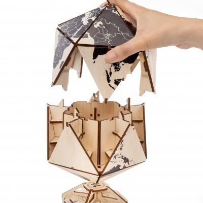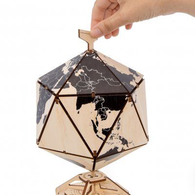Глобус икосаэдрической формы с секретным отделением внутри шара и секретным механическим запирающим механизмом.