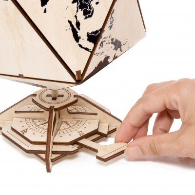 Глобус выполнен из дерева (березовой фанеры высшего сорта) и окрашен экологичными красками.